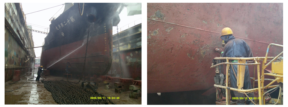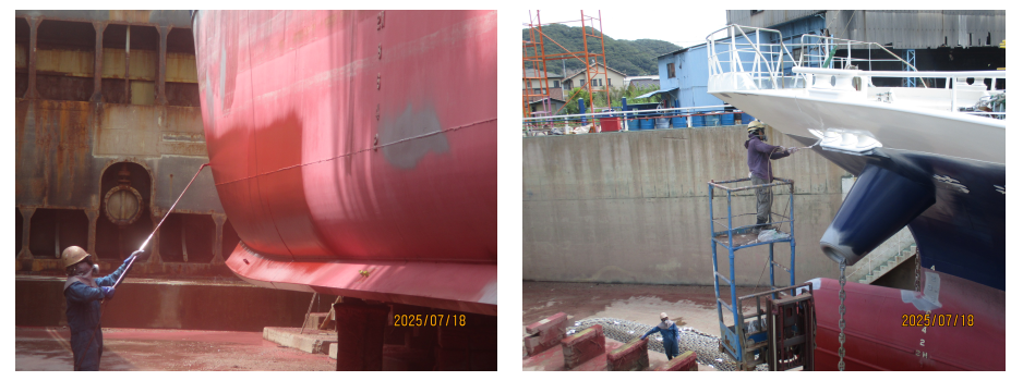 高圧で噴出される水で船体に付着している貝や海藻などを洗い落とし、