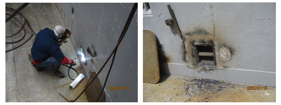運航社様が変更になり、運ぶ荷物も変わってくるため、新たに船倉壁にラッシングピースを設置しました。
