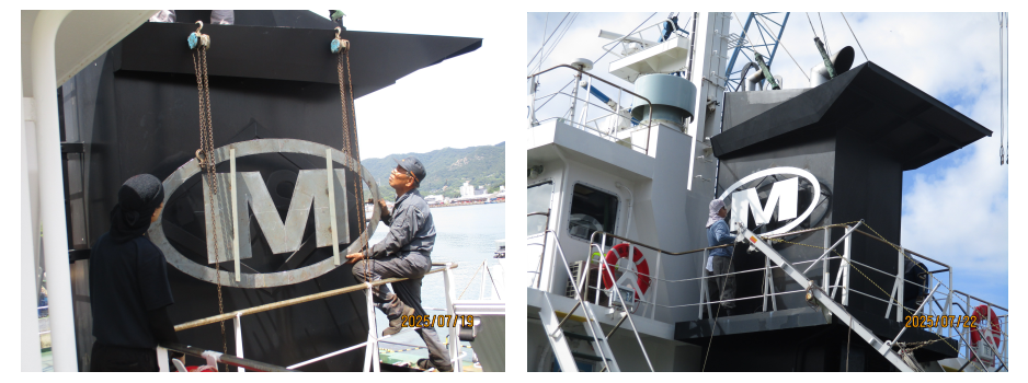 新たな明和海運㈱様のMマークに恥じぬよう、安全で安定した運航を継続してまいります。